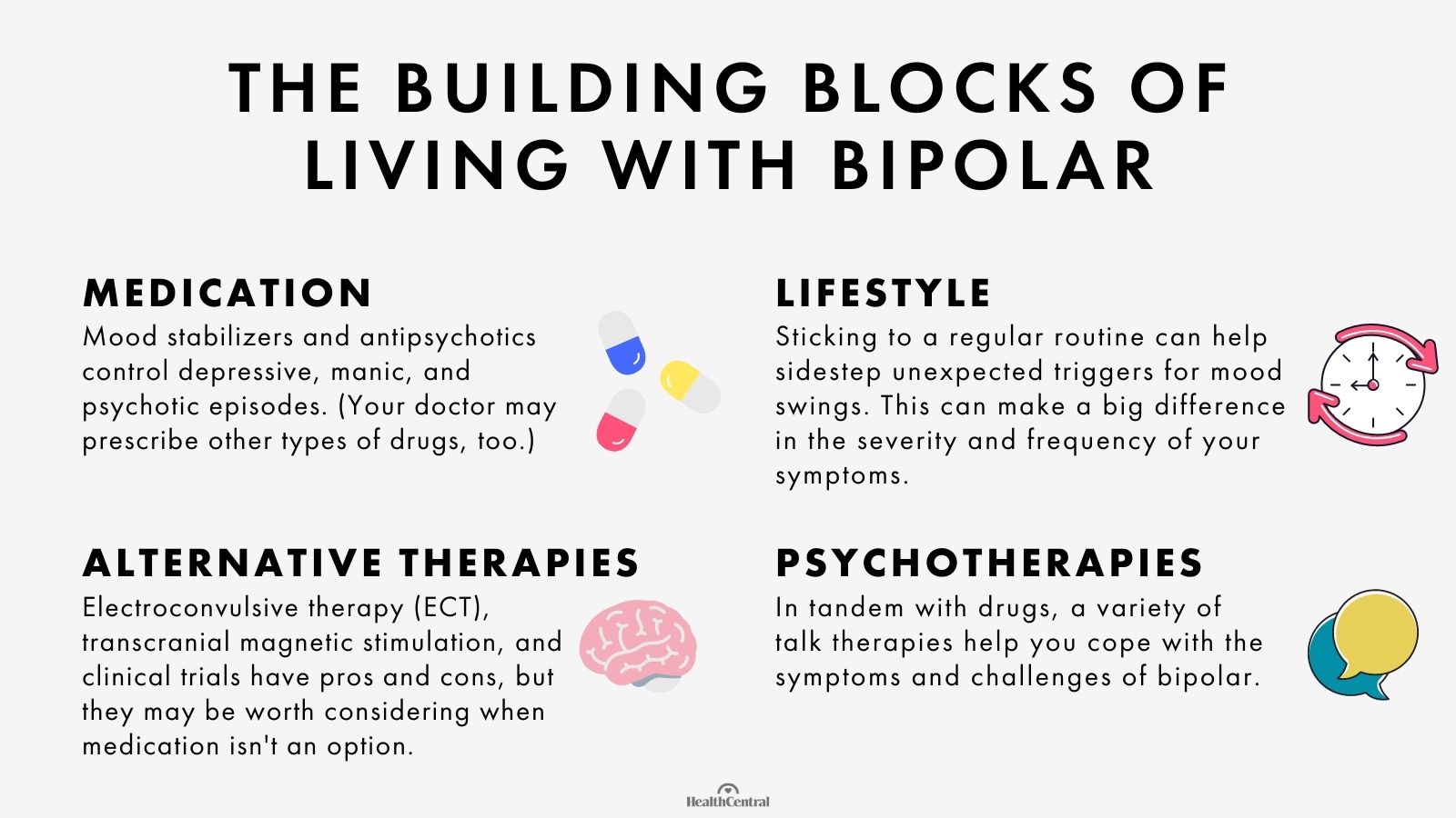 Medications are an essential part of a treatment plan. They won’t cure you, but they will help you keep your moods in balance so you can do the things you need and want to do.