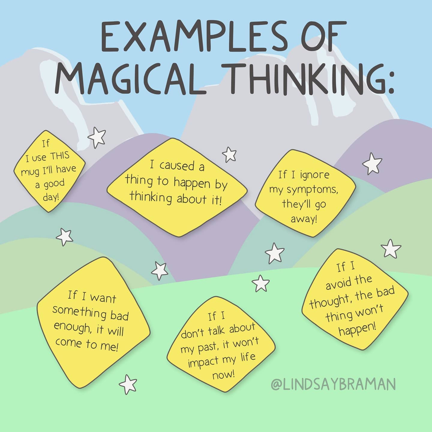 The magical thinking leads to compulsions like “I have to pace 100 steps to prevent an earthquake from happening” or “I have to drive around the block 20 times to make sure that the speed bump wasn’t actually a person.